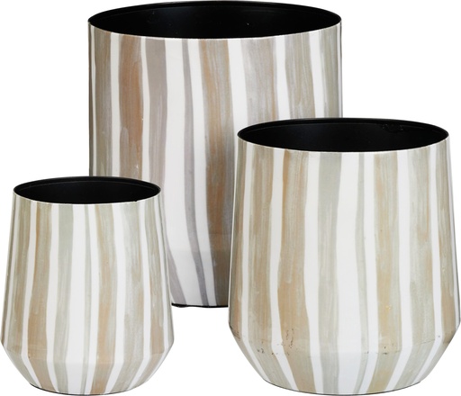 JUEGO DE MACETAS CON LÍNEAS - METAL - SET DE 3